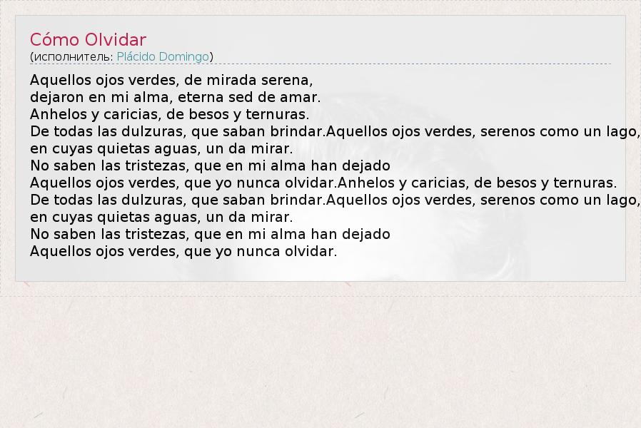 А как ты думаешь, о чем песня "Cómo Olvidar" ?