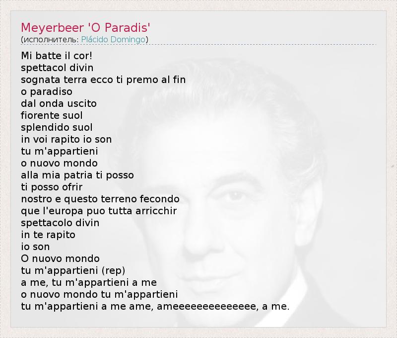 А как ты думаешь, о чем песня "Meyerbeer 'O Paradis'" ?