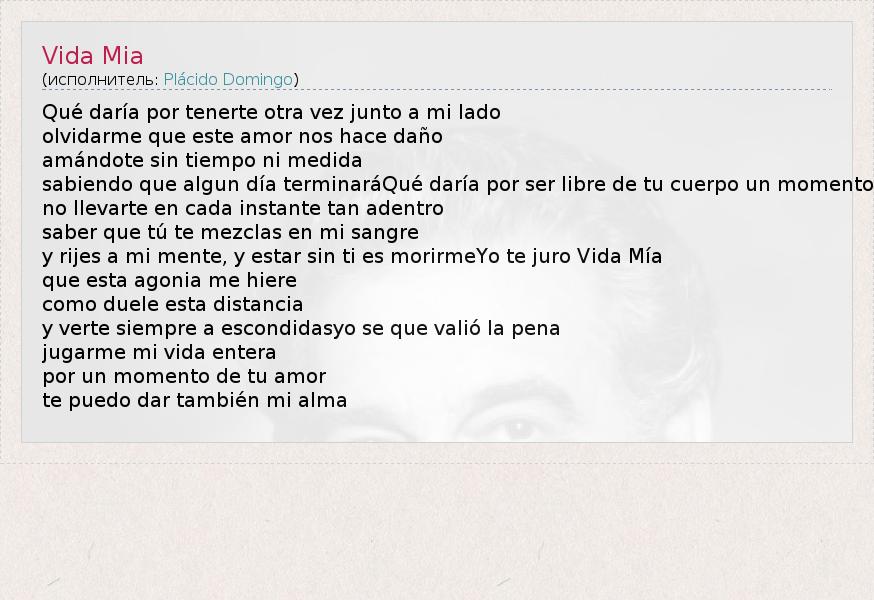 А как ты думаешь, о чем песня "Vida Mia" ?