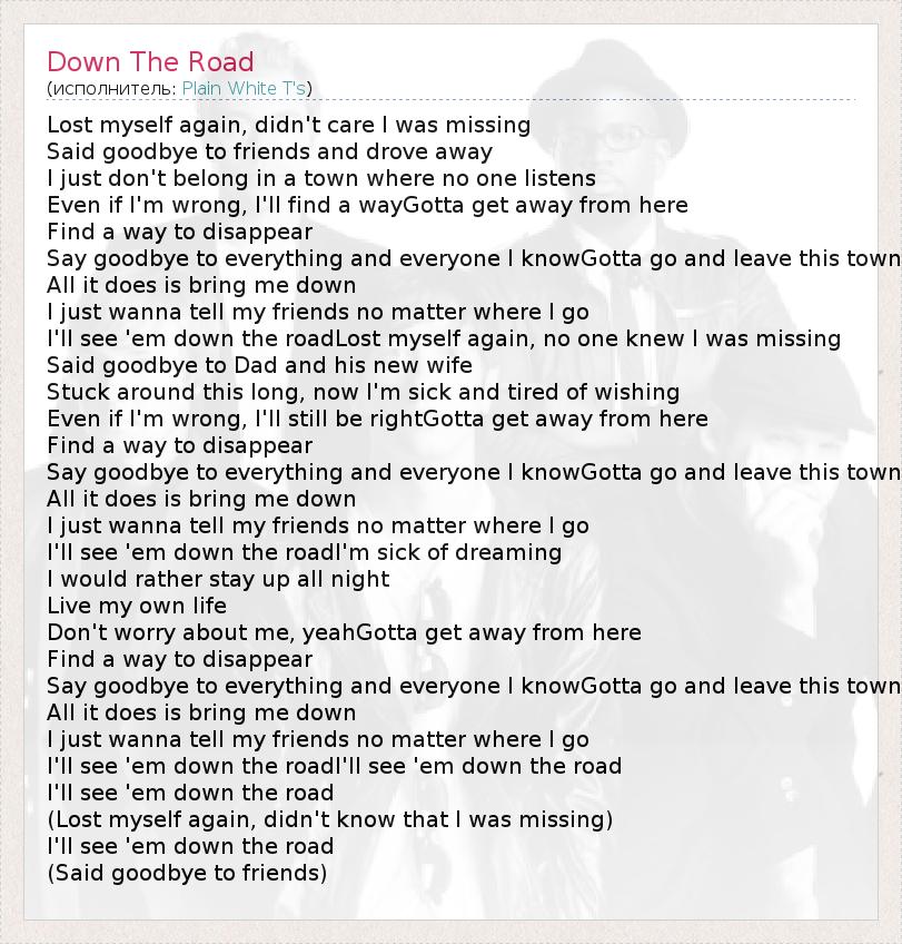 А как ты думаешь, о чем песня "Down The Road" ?