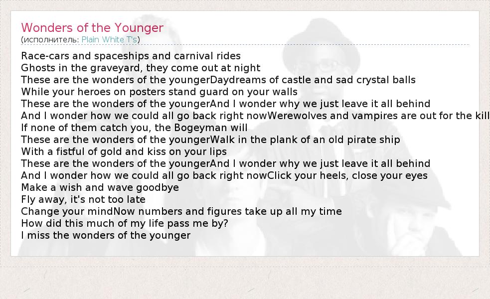 А как ты думаешь, о чем песня "Wonders of the Younger" ?