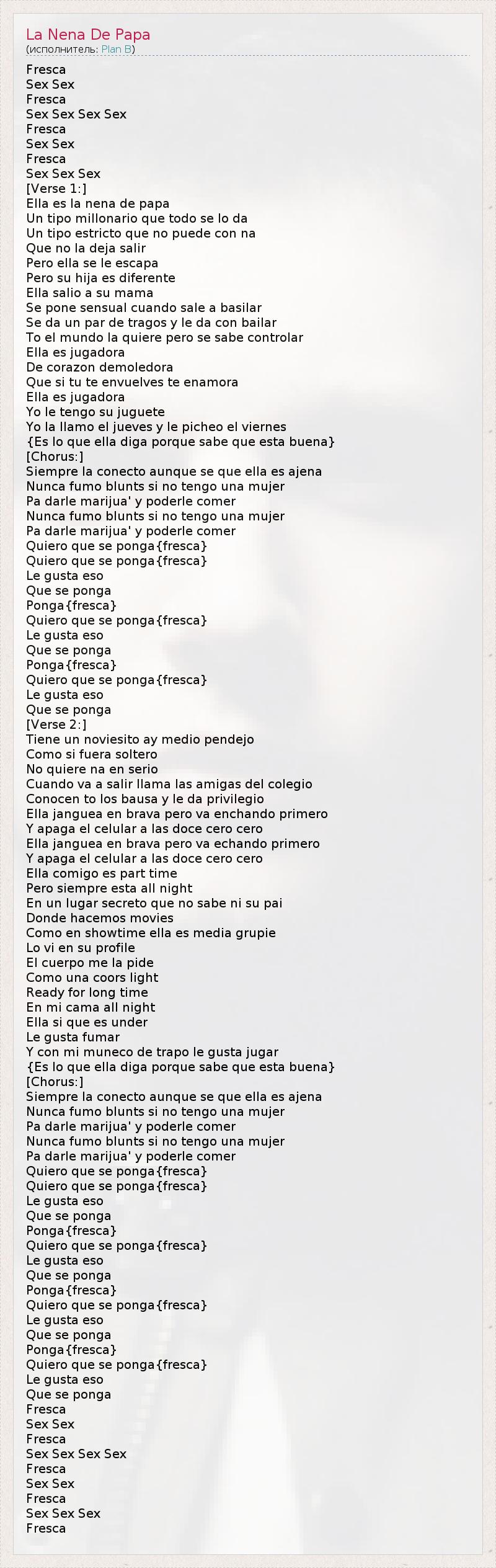 А как ты думаешь, о чем песня "La Nena De Papa" ?