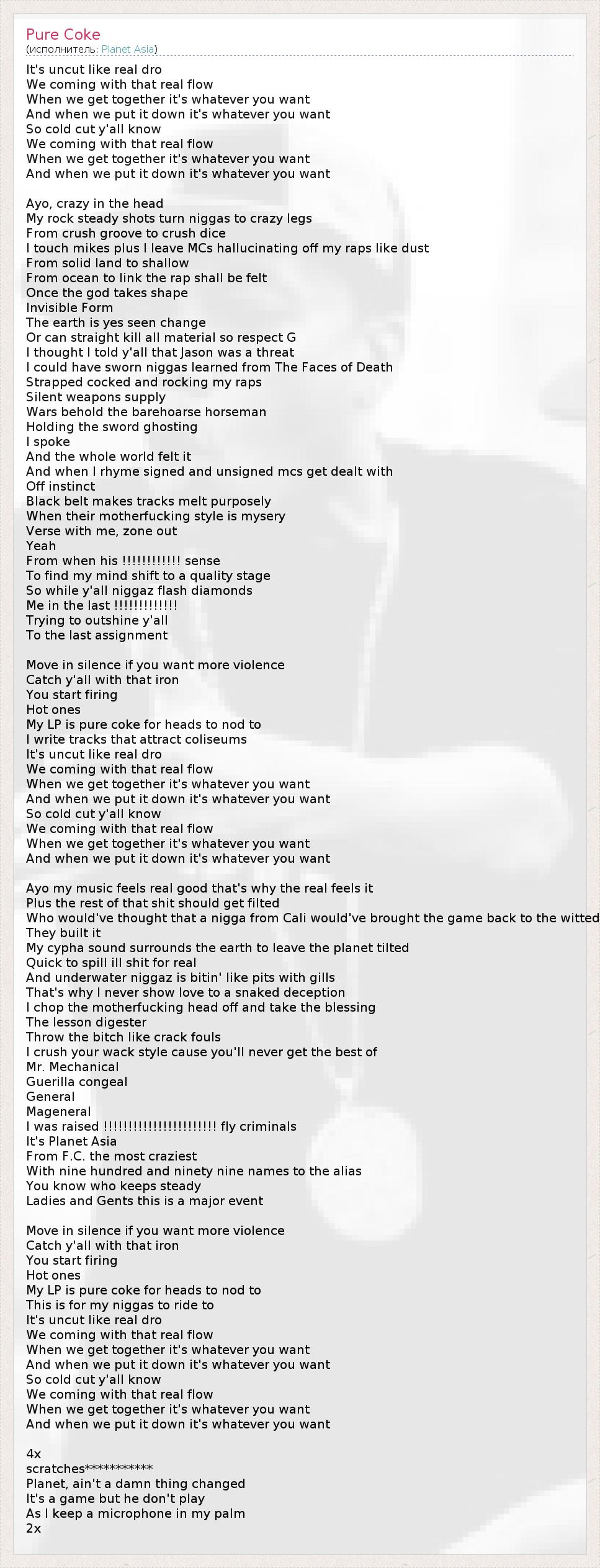А как ты думаешь, о чем песня "Pure Coke" ?