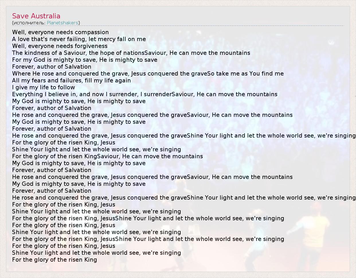 А как ты думаешь, о чем песня "Save Australia" ?