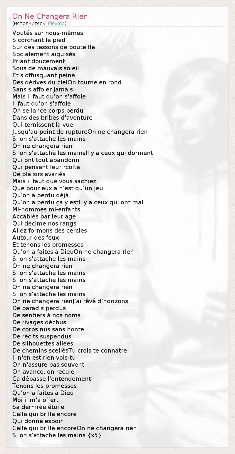 А как ты думаешь, о чем песня "On Ne Changera Rien" ?