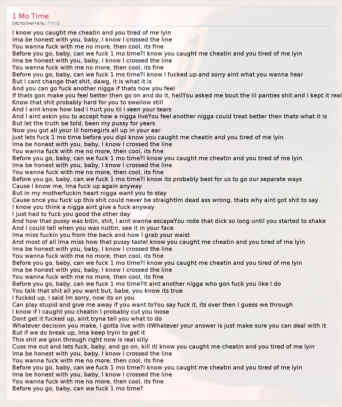 Before you go, baby, can we fuck 1 mo time?I know you caught me cheatin and you tired of me lyin