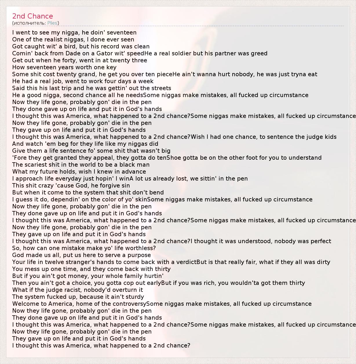 I thought this was America, what happened to a 2nd chance?Some niggas make mistakes, all fucked up circumstance