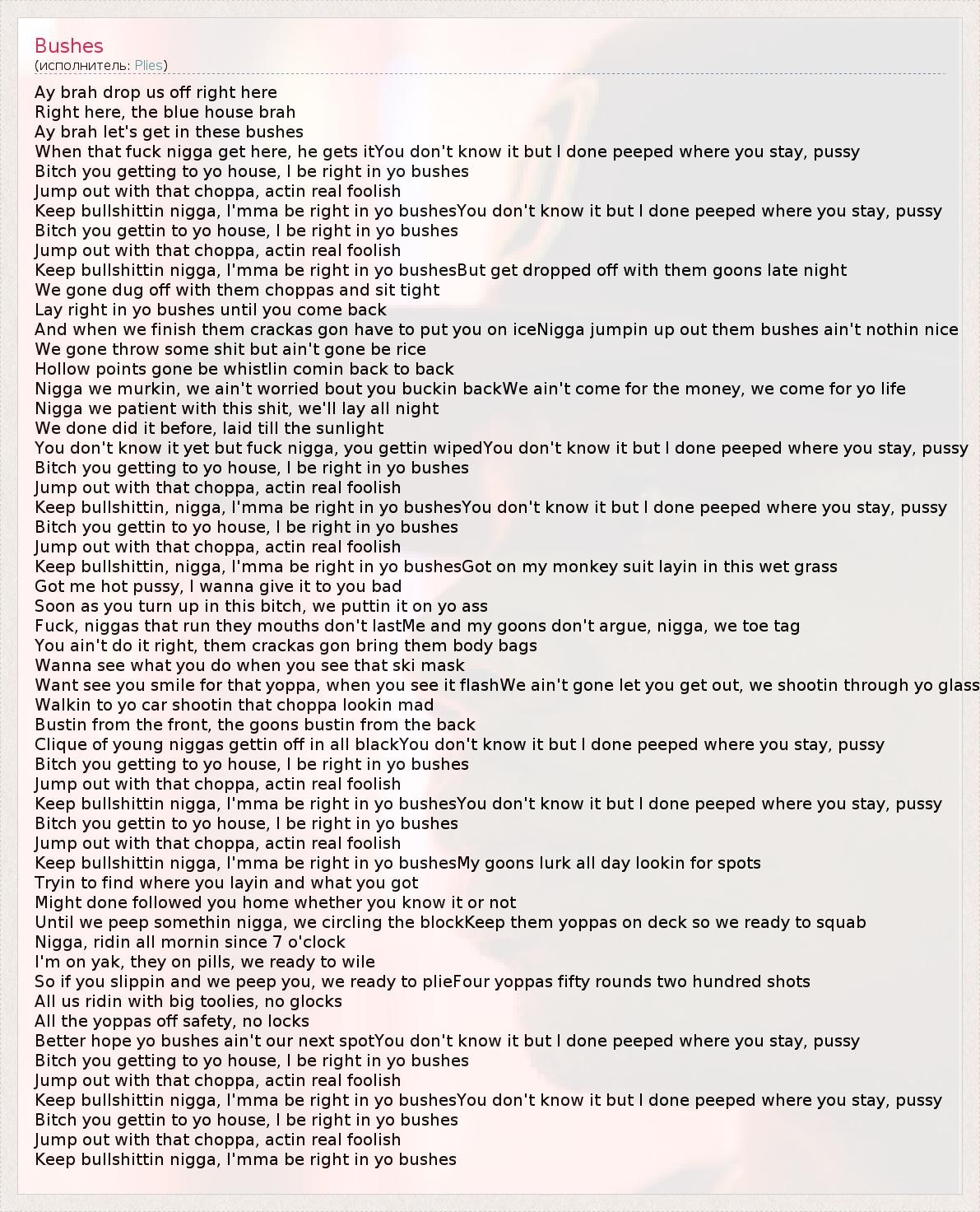Better hope yo bushes ain't our next spotYou don't know it but I done peeped where you stay, pussy