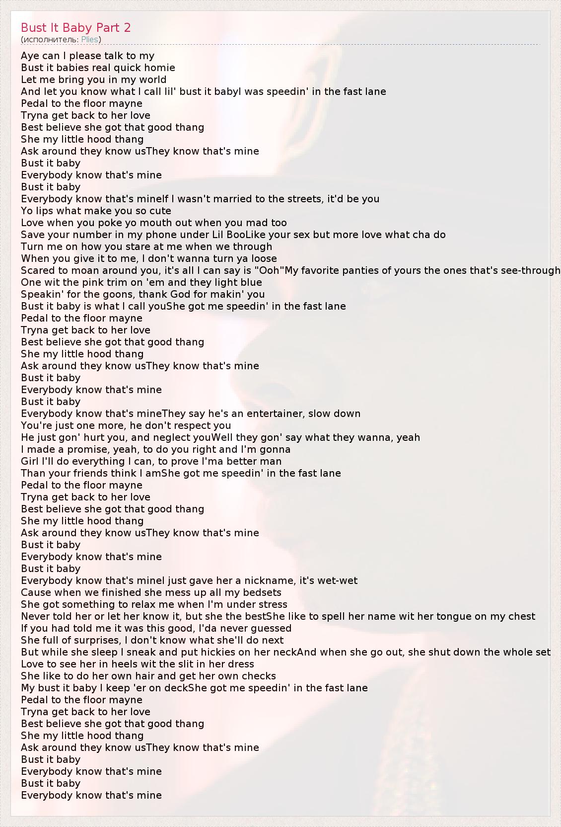 ГлавнаяИсполнителиPliesBust It Baby Part 2