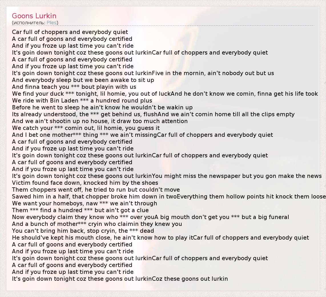 А как ты думаешь, о чем песня "Goons Lurkin" ?