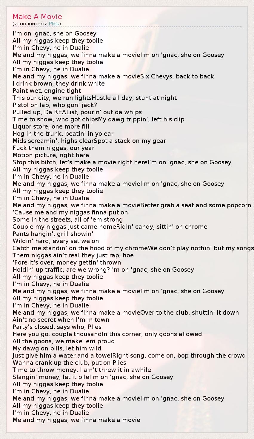 А как ты думаешь, о чем песня "Make A Movie" ?