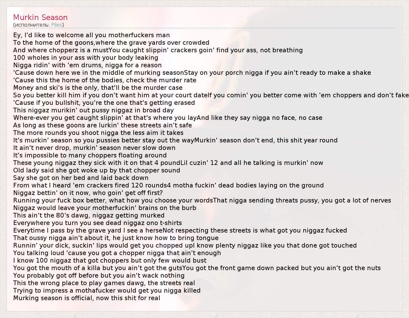 Everytime I pass by the grave yard I see a herseNot respecting these streets is what got you niggaz fucked