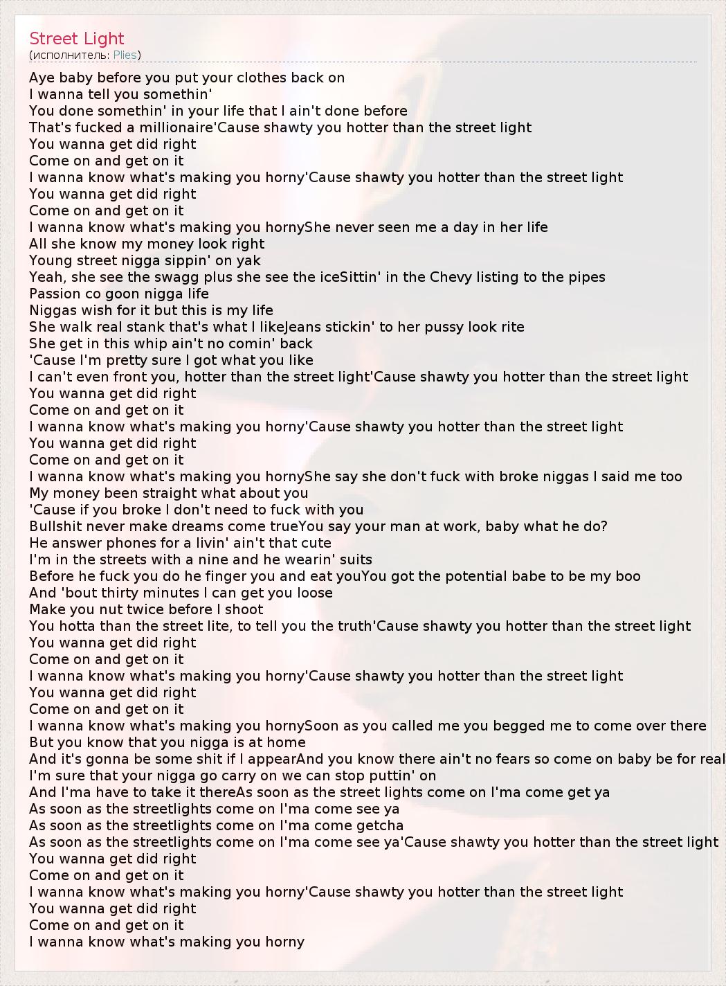 I wanna know what's making you horny'Cause shawty you hotter than the street light
