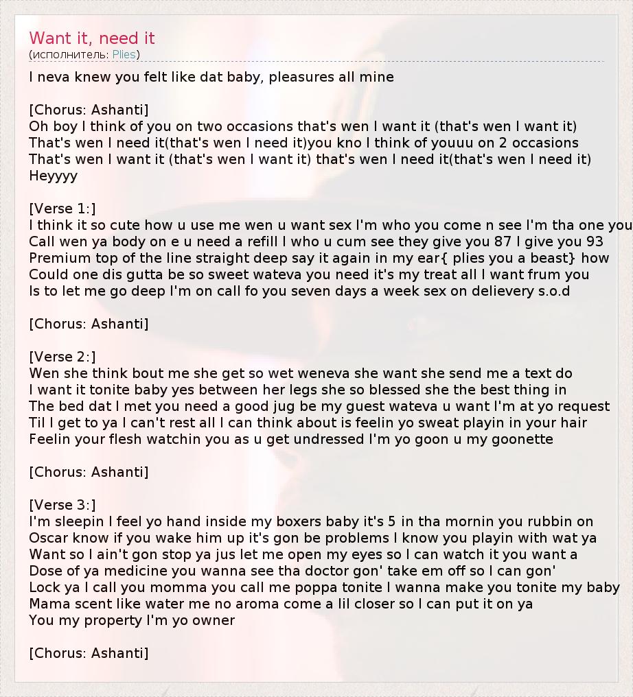 А как ты думаешь, о чем песня "Want it, need it" ?