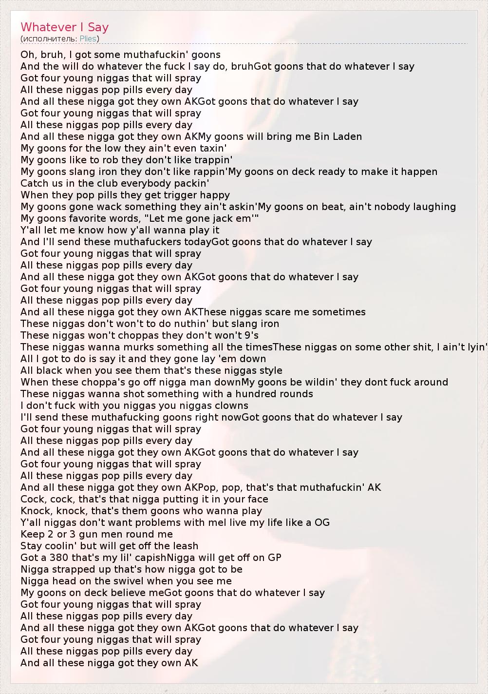 А как ты думаешь, о чем песня "Whatever I Say" ?