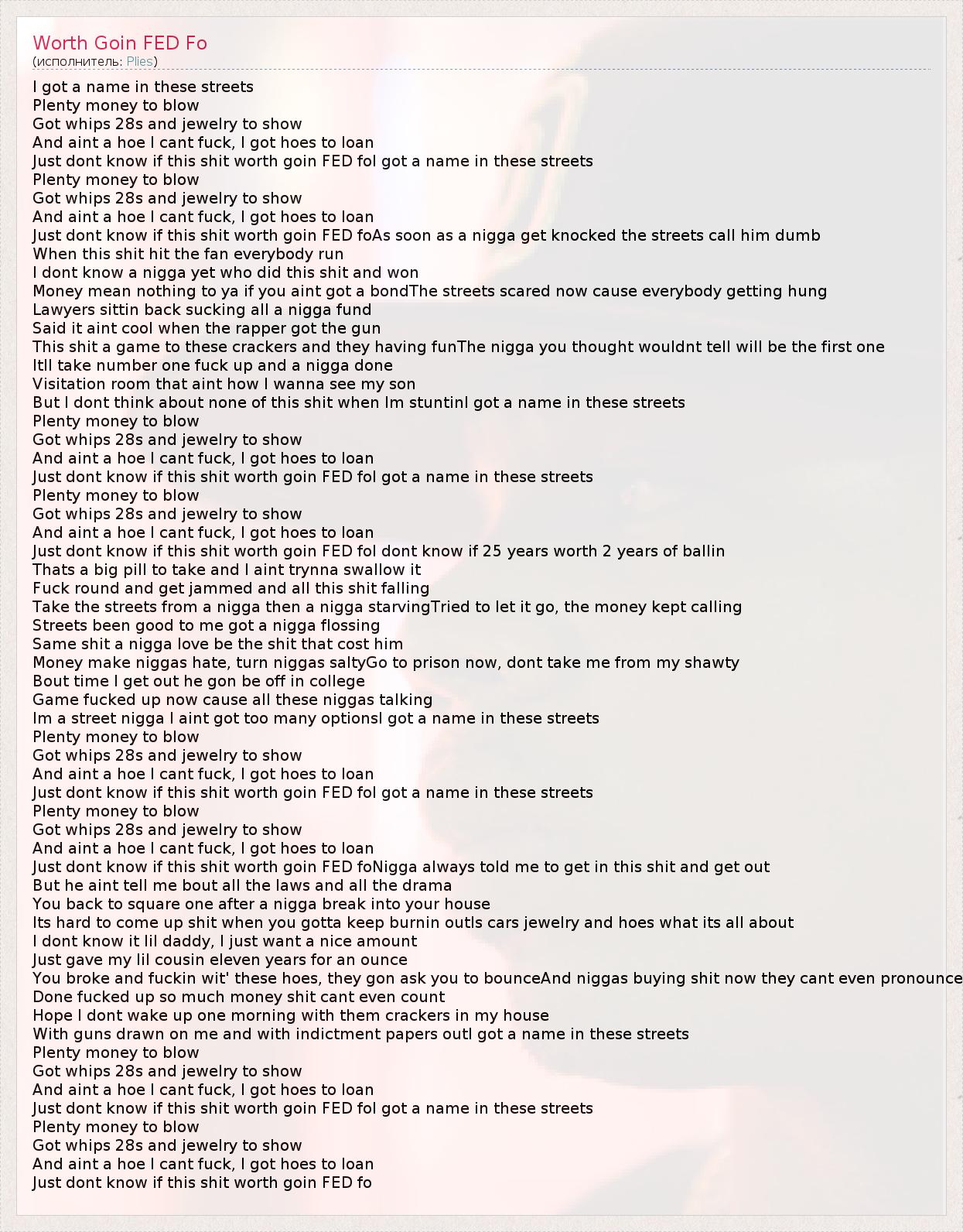 Just dont know if this shit worth goin FED foI got a name in these streets