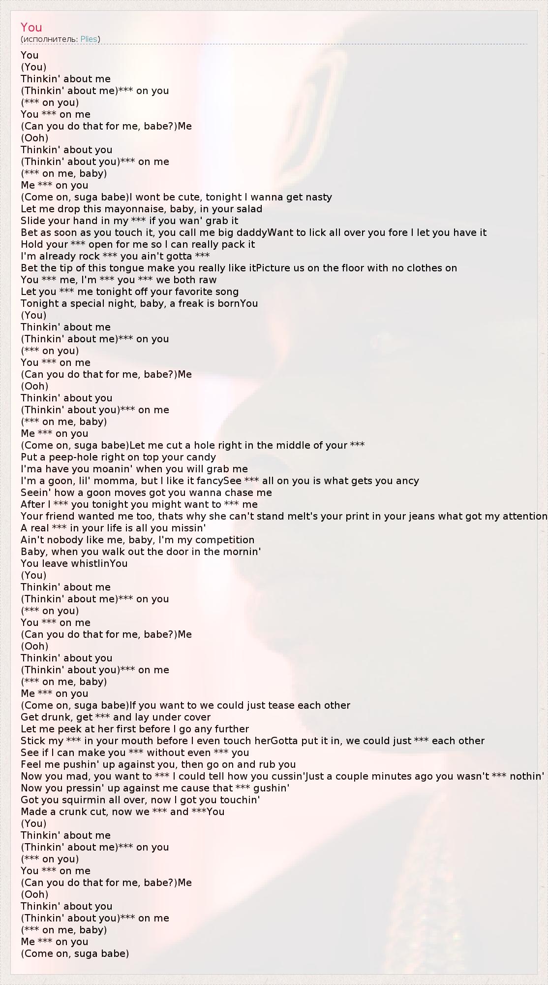 Это интересно:Plies - уроженец Флориды, родился 1 июля 1976 года. Начал свою рэп-карьеру еще в 2004 году, однако баловал слушателей лишь гостевыми участиями в треках известных артистов.Plies и его брат Levatte начали свою карьеру в 1999 году, сотрудничая с "Big Gates Records". Первой композицией стала "Tell Dem Krackers Dat", после чего ребята стали официально сотрудничать с "Slip-N-Slide Records". Позднее лейбл предложил выпустить... продолжение