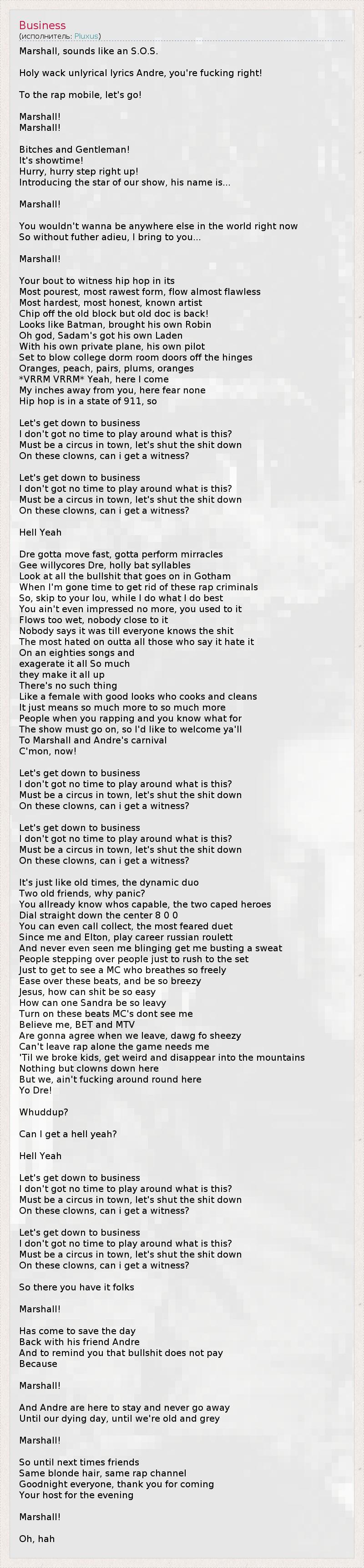 А как ты думаешь, о чем песня "Business" ?