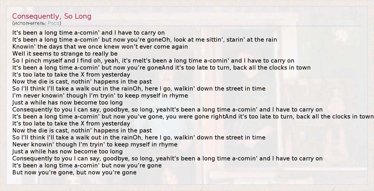 ГлавнаяИсполнителиPocoConsequently, So Long
