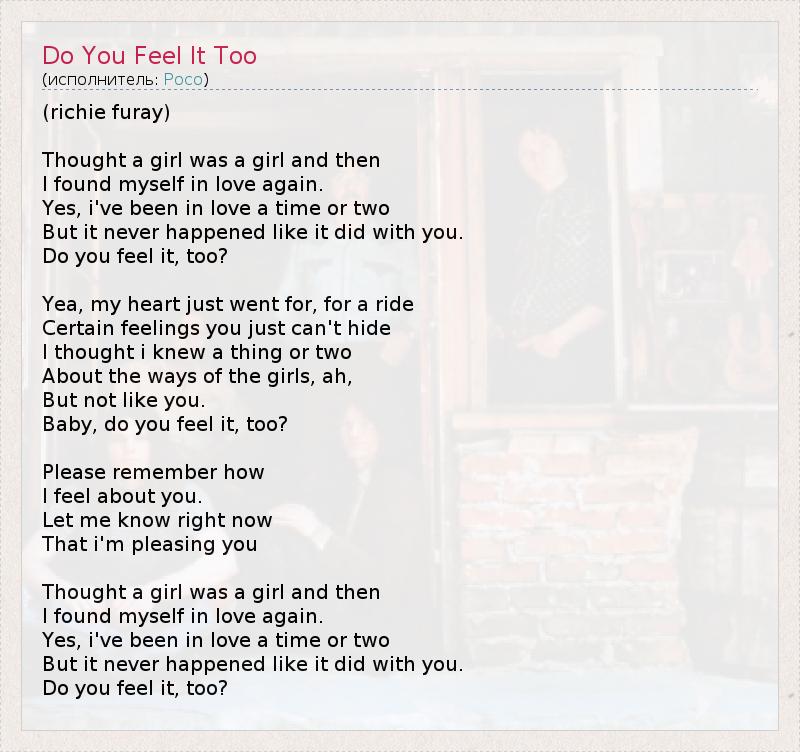 А как ты думаешь, о чем песня "Do You Feel It Too" ?