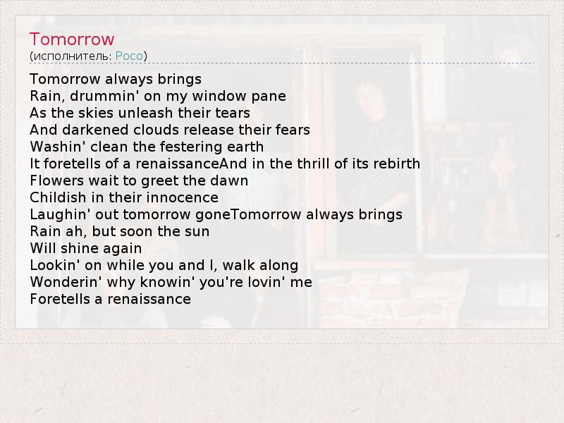 А как ты думаешь, о чем песня "Tomorrow" ?