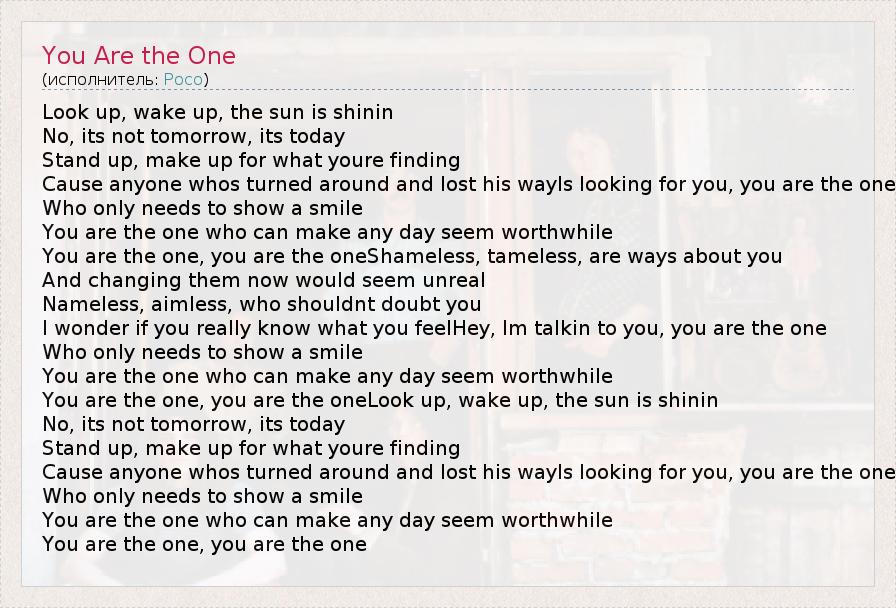 You are the one, you are the oneLook up, wake up, the sun is shinin