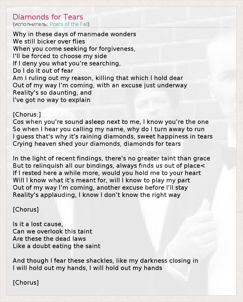 А как ты думаешь, о чем песня "Diamonds for Tears" ?