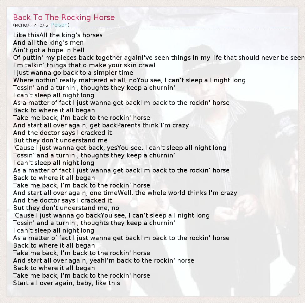 ГлавнаяИсполнителиPoisonBack To The Rocking Horse