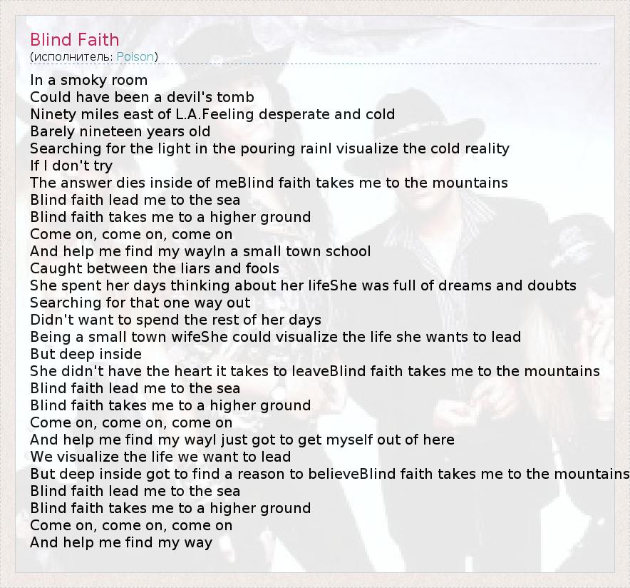 А как ты думаешь, о чем песня "Blind Faith" ?