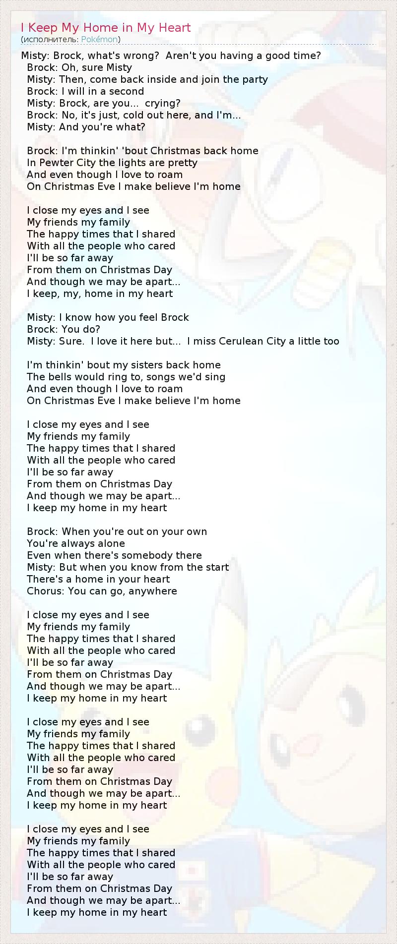 ГлавнаяИсполнителиPokémonI Keep My Home in My Heart