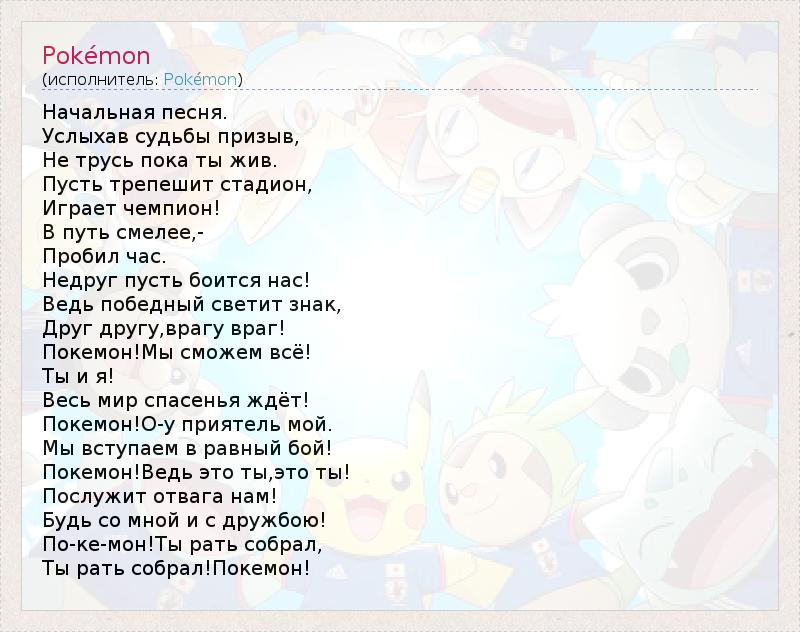 А как ты думаешь, о чем песня "Pokémon" ?