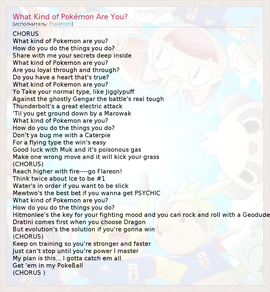 А как ты думаешь, о чем песня "What Kind of Pokémon Are You?" ?