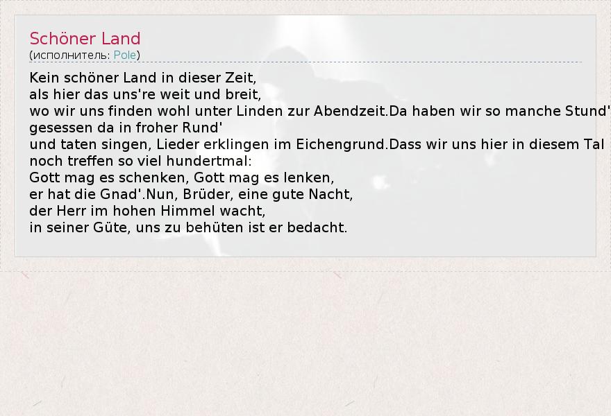А как ты думаешь, о чем песня "Schöner Land" ?