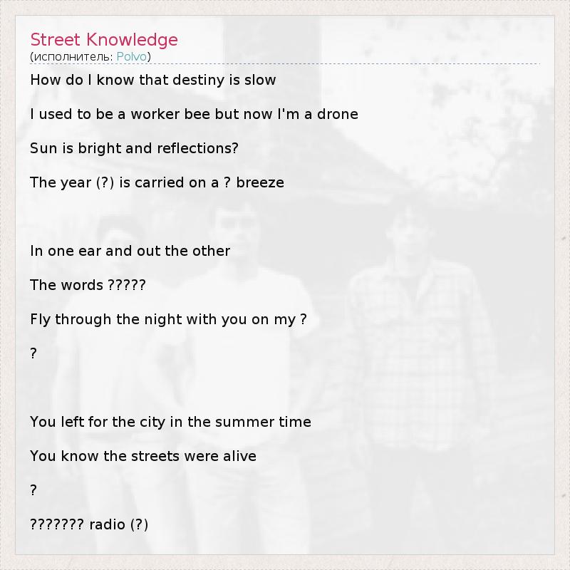 А как ты думаешь, о чем песня "Street Knowledge" ?