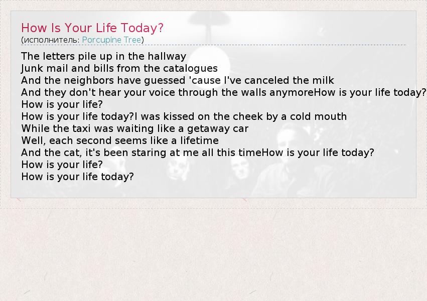 А как ты думаешь, о чем песня "How Is Your Life Today?" ?