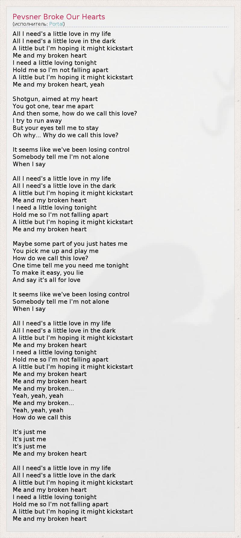 ГлавнаяИсполнителиPortalPevsner Broke Our Hearts