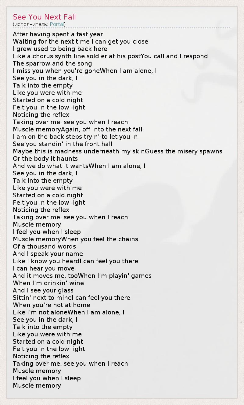А как ты думаешь, о чем песня "See You Next Fall" ?