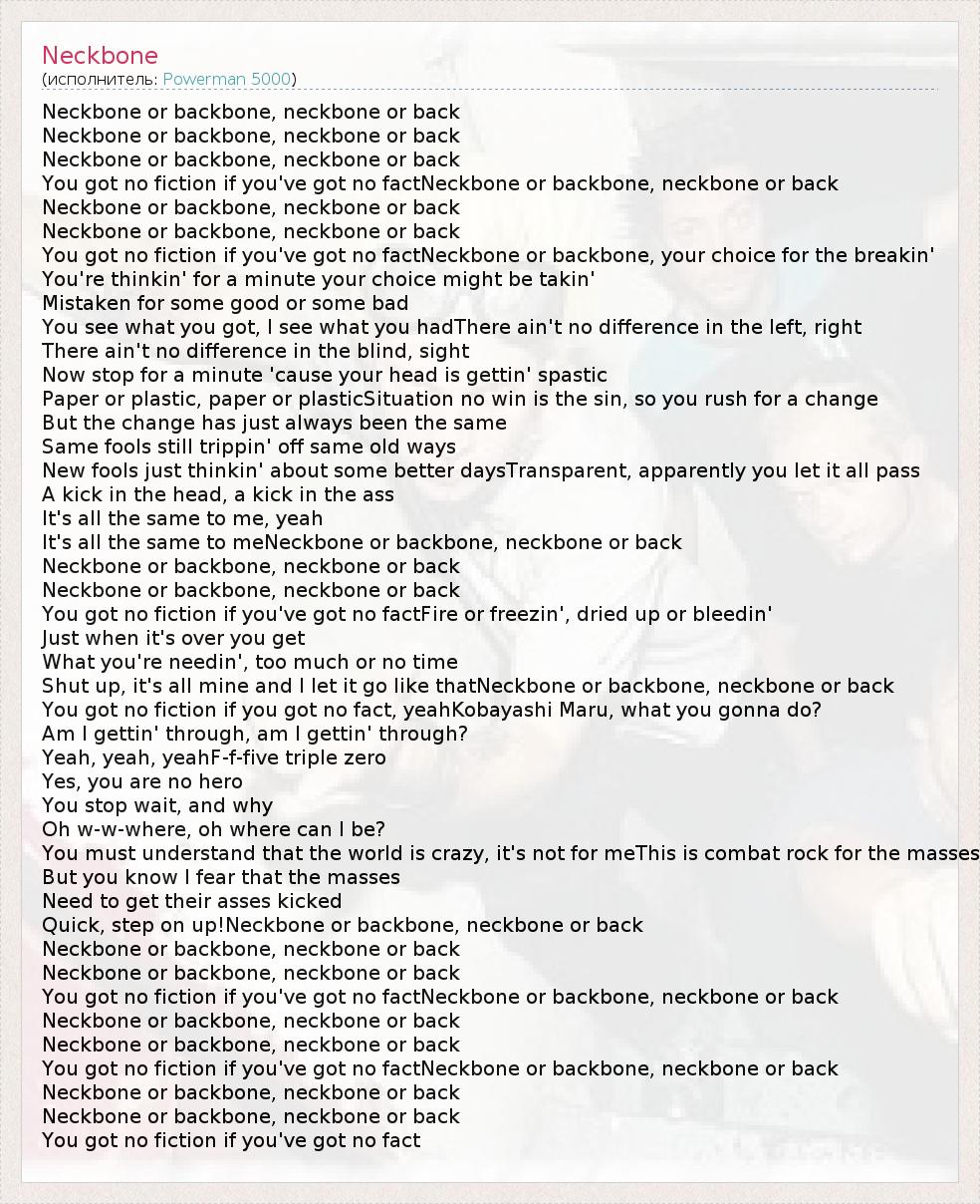 You got no fiction if you've got no factNeckbone or backbone, neckbone or back