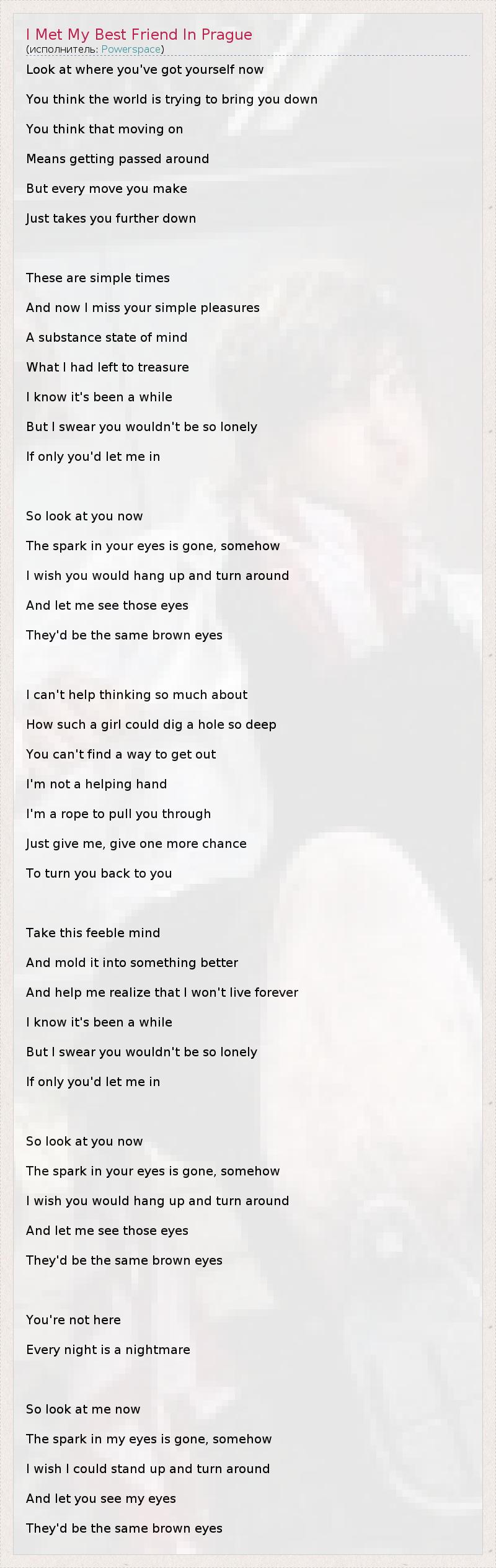 А как ты думаешь, о чем песня "I Met My Best Friend In Prague" ?
