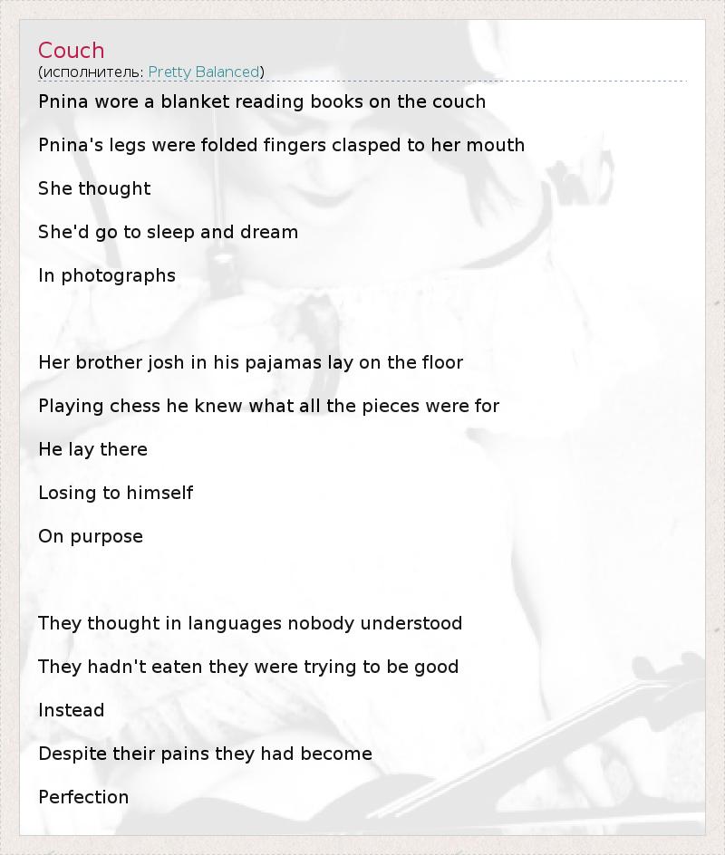 Это интересно:Country: USAStyle: Indie / CabaretБудущие участники Pretty Balanced встретились в городе Коламбус, Огайо, когда еще учились в выпускных классах школы. Сегодня самому младшему участнику группы - виолончелисту Forest - 19 лет, вокалистке и клавишнице Judith - 20, старше всех барабанщик и скрипач John - ему 21. Сегодня они учатся в институте и в свободное от учёбы время пишут и играют замечательную музыку. Они характеризуют... продолжение