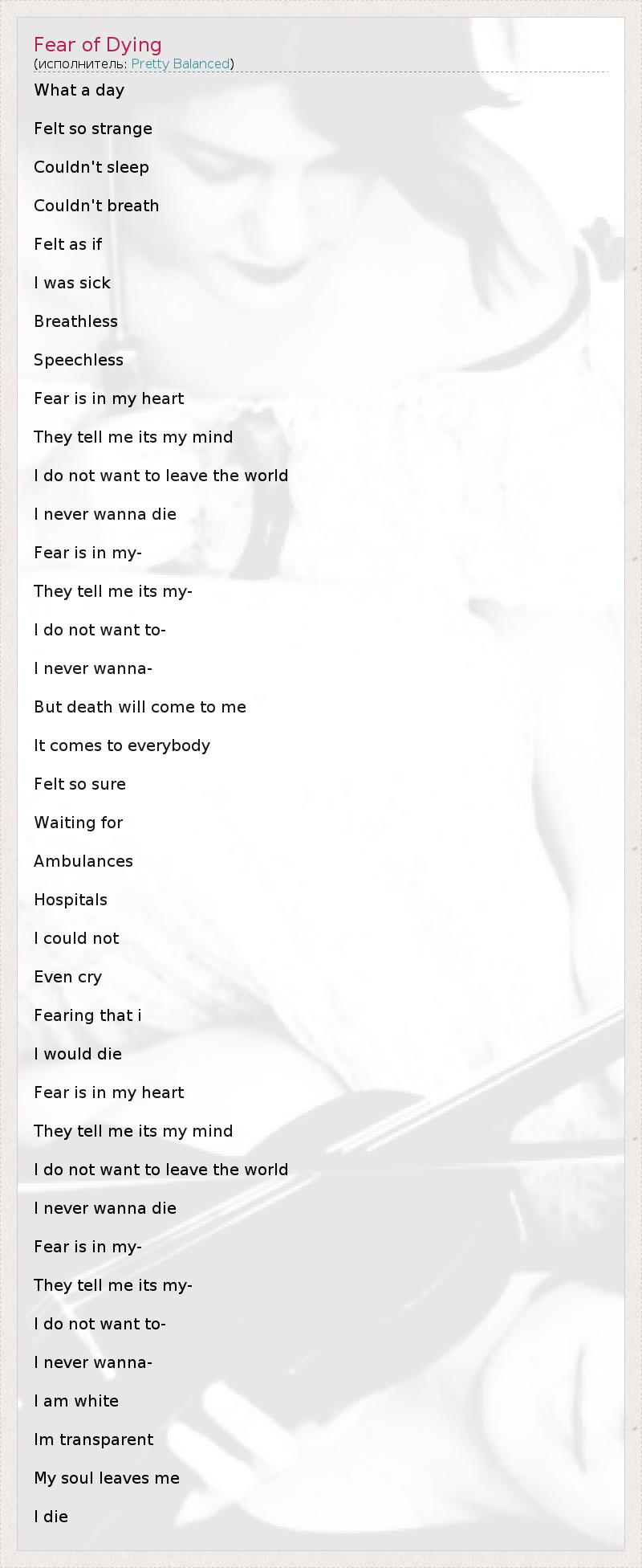А как ты думаешь, о чем песня "Fear of Dying" ?