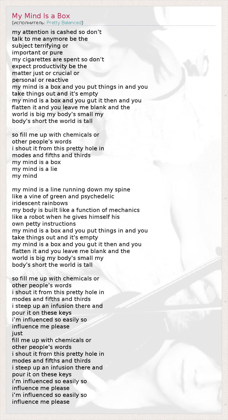 А как ты думаешь, о чем песня "My Mind Is a Box" ?