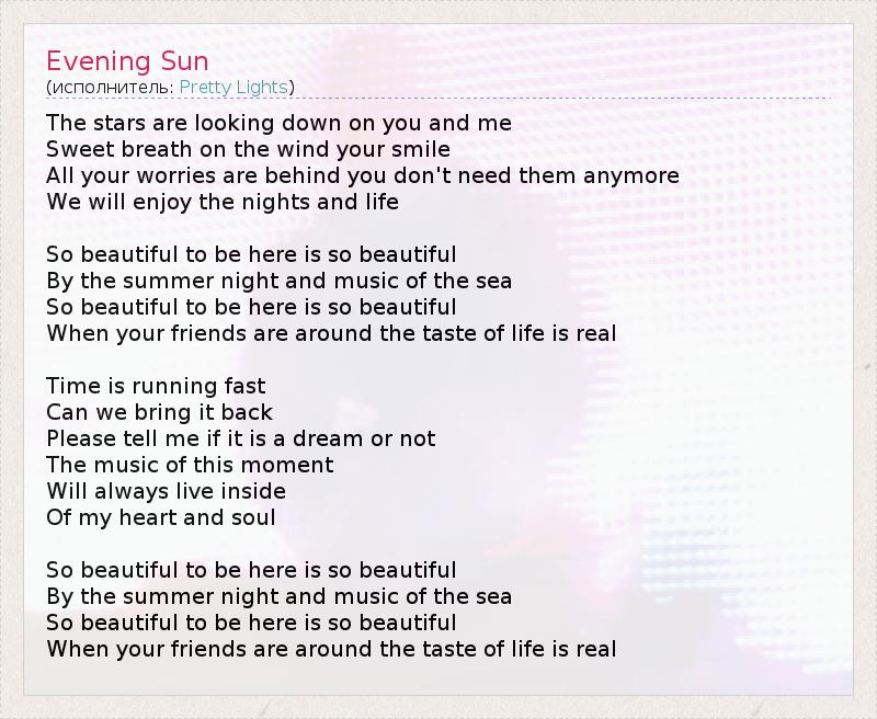 А как ты думаешь, о чем песня "Evening Sun" ?