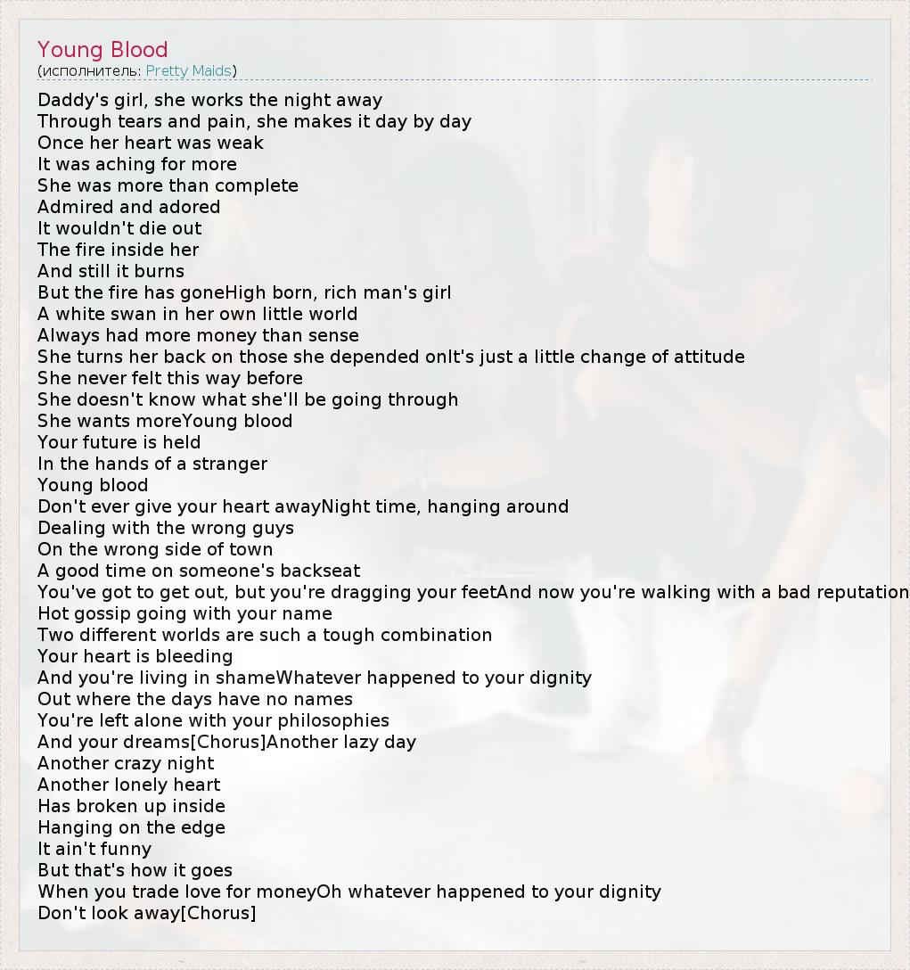 А как ты думаешь, о чем песня "Young Blood" ?