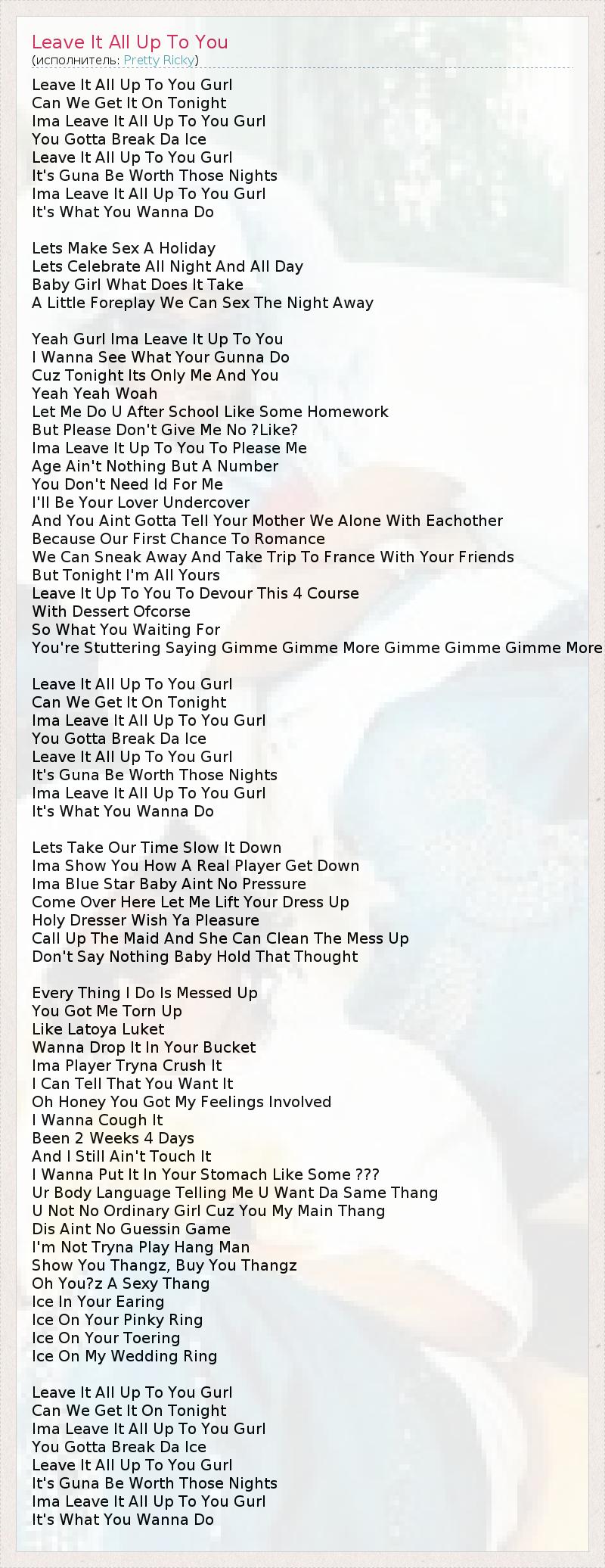 А как ты думаешь, о чем песня "Leave It All Up To You" ?