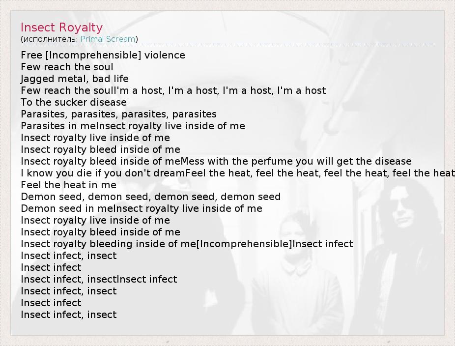 А как ты думаешь, о чем песня "Insect Royalty" ?
