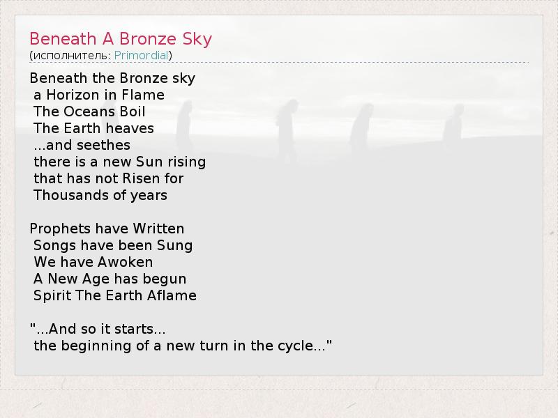 А как ты думаешь, о чем песня "Beneath A Bronze Sky" ?