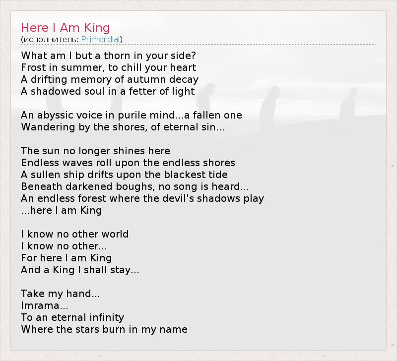 А как ты думаешь, о чем песня "Here I Am King" ?