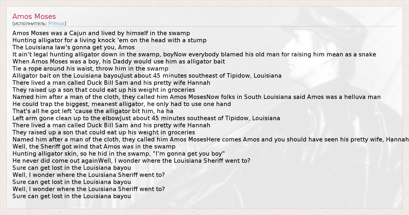 А как ты думаешь, о чем песня "Amos Moses" ?
