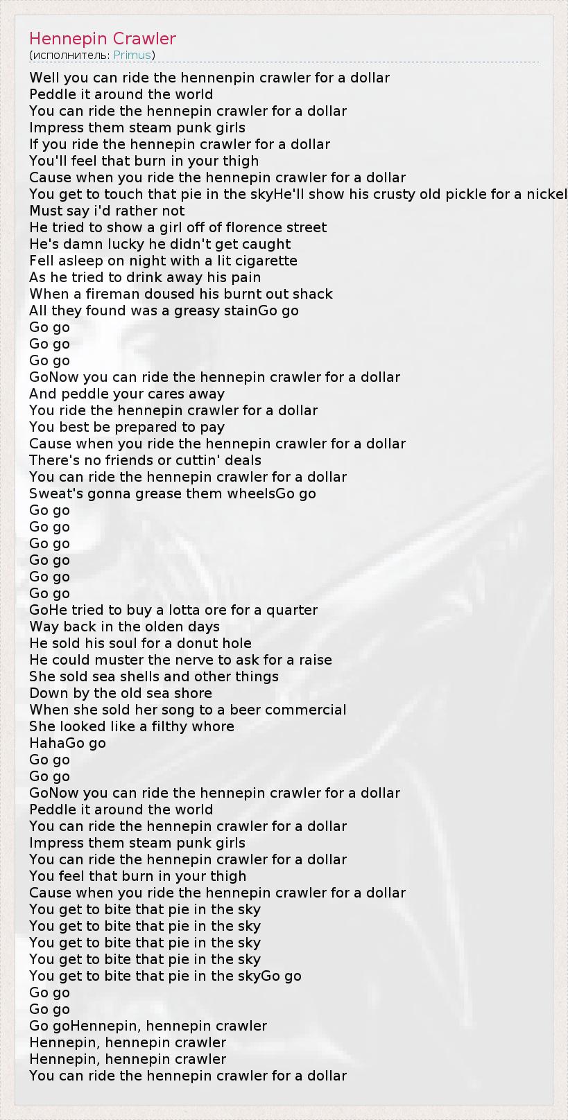 А как ты думаешь, о чем песня "Hennepin Crawler" ?